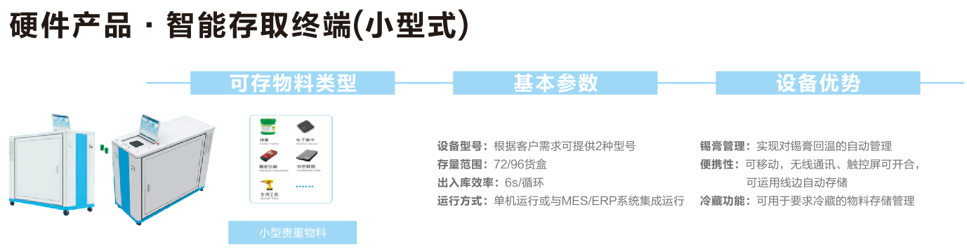小型一對(duì)一智能存取終端,可實(shí)現(xiàn)對(duì)錫膏回溫的自動(dòng)管理,可移動(dòng),無(wú)線通訊、觸控屏可開(kāi)會(huì),可運(yùn)用線邊自動(dòng)存儲(chǔ)??捎糜谝罄洳氐奈锪洗鎯?chǔ)管理。