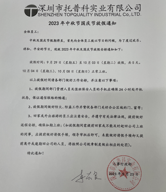 根據(jù)國家放假安排及結(jié)合公司實際情況,現(xiàn)將放假通知公布如下: