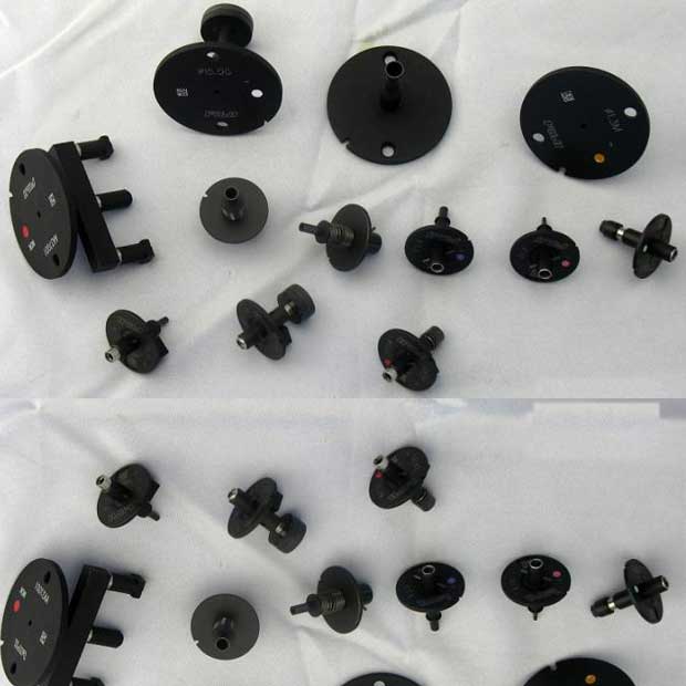 吸嘴形狀有方孔,圓通,V槽等。訂做的吸嘴,一般根據(jù)料的形狀,選取平整的吸著點,有些做成伸長的吸嘴,伸進(jìn)料的凹槽平面吸取,有些根據(jù)料的邊緣,做成回字型,有些兩端用平面,中間不平,則要搭個橋。有些料有粘性,不好放料,則要在吸嘴壁開些槽,或是做成膠頭。