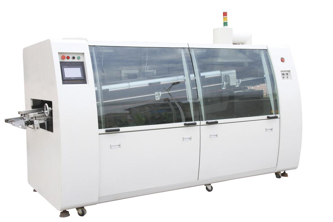將熔化的軟釬焊料(鉛錫合金),經(jīng)電動泵或電磁泵噴流成設(shè)計要求的焊料波,使預(yù)先裝有元器件的印制板通過焊料波,實現(xiàn)元器件焊端或引腳與印制板焊盤間機械與電氣連接的軟釬焊。波峰焊機主要是由運輸帶,助焊劑添加區(qū),預(yù)熱區(qū)和波錫爐組成,其主要材料是焊錫條