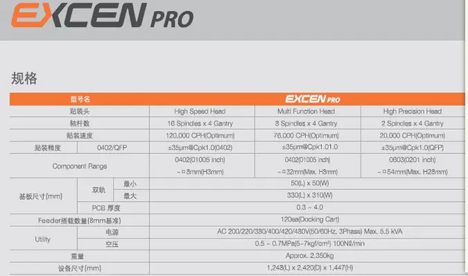 三星貼片機(jī)EXCEN PRO 配有16個(gè)吸嘴,旋轉(zhuǎn)式頭部的高速模塊式貼片機(jī),它實(shí)現(xiàn)了世界同級(jí)產(chǎn)品中的最高速度120,000CPH,也實(shí)現(xiàn)了世界最高的面積生產(chǎn)性。另通過(guò)元器件的貼裝前·后的監(jiān)控功能(SVS:Side-view Vision System)確保了微小元器件的貼裝信賴(lài)性,通過(guò)適用不停線(xiàn)基種變更、不同基板混流生產(chǎn)等多種動(dòng)作模式及世界最初自動(dòng)接料、自動(dòng)供料功能的SMART Feeder,實(shí)現(xiàn)了作業(yè)便利性和實(shí)際生產(chǎn)性極大化