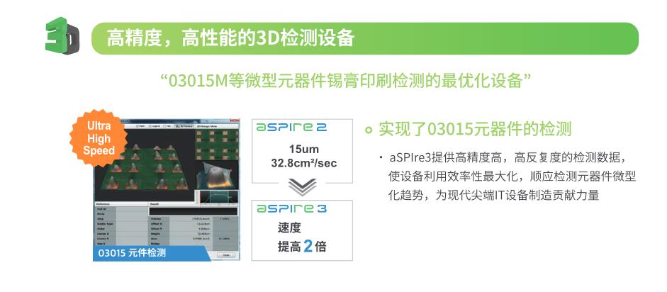 KOH YOUNG/高永 aSPIre 3 錫膏檢測機功能特點 ●測量精度和檢測可靠性行業(yè)領先 - 可消除陰影問題、基本水平設置和投影方向問題 - 全三維異物檢測解決方案,適用于整個 PCB - 高生產(chǎn)力與最高精度珠聯(lián)璧合