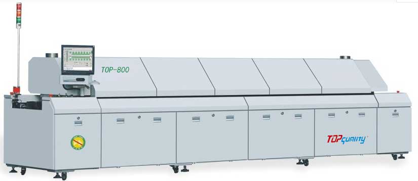 大型電腦無(wú)鉛八溫區(qū)回流焊,主要用于大規(guī)模PCB板錫膏焊接。運(yùn)風(fēng)馬達(dá)有變頻器控制轉(zhuǎn)速,加熱板為10MM后的鍍銅鋁板,熱補(bǔ)償性能好。