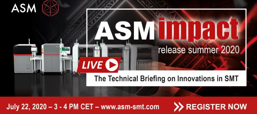 ASM將于7月22日下午3點(diǎn)至下午4點(diǎn)在名為“ ASM Impact – 2020年夏季發(fā)布”的直播中展示SMT生產(chǎn)的最新硬件和軟件版本。除了專家聊天之外,用戶還可以在分拆會(huì)議上與ASM專家討論更詳細(xì)的問題。